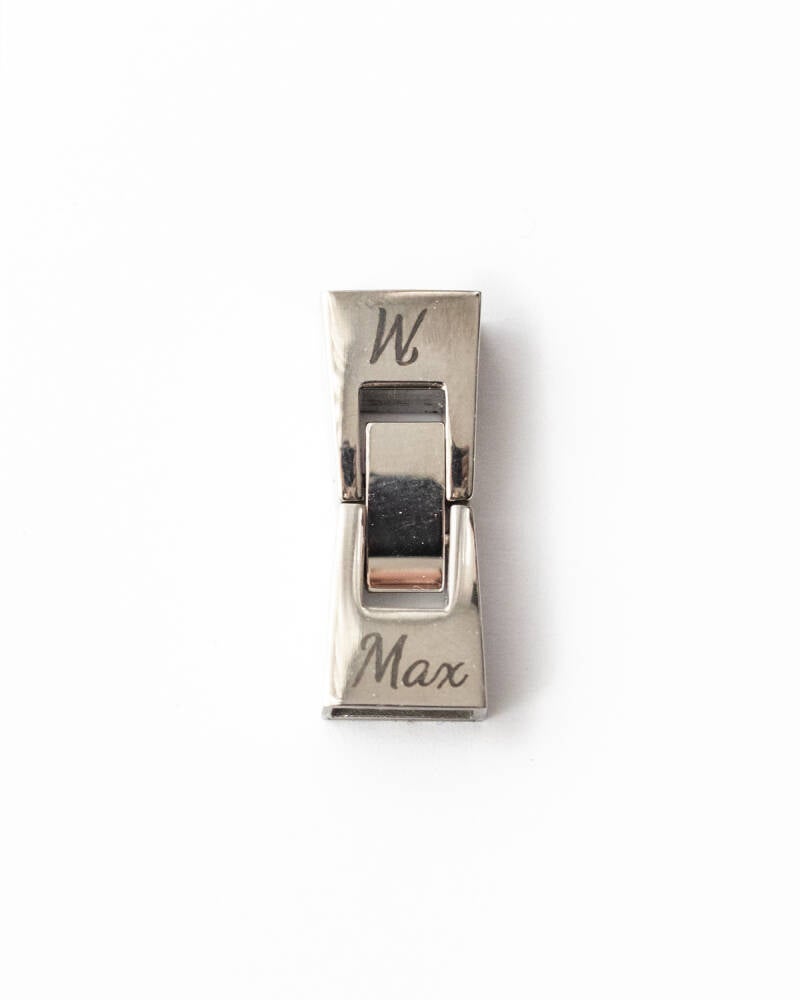 Dies ist nur bei einem Edelstahlverschluss in Gold oder Silber möglich. Darauf passt ein kurzer Name oder ein Anfangsbuchstabe.